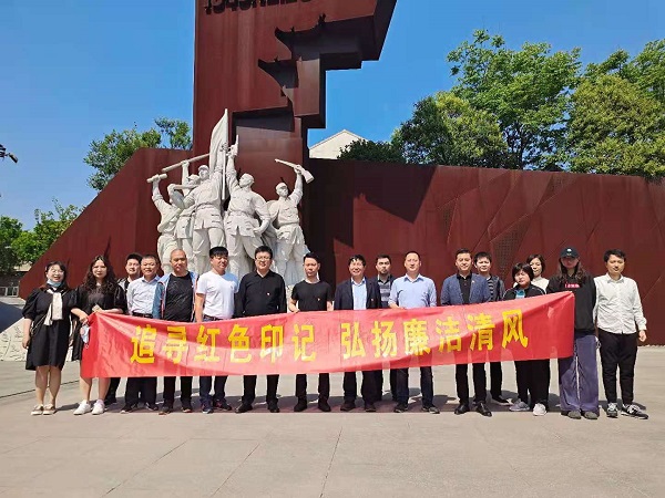 為進一步傳承和弘揚革命精神,推進黨史學習教育與黨風廉政建設工作深度融合,5月22日上午,高郵鴨集團黨支部組織全體黨員干部及青年職工代表赴抗日戰爭最后一役文化園,開展“追尋紅色印記 弘揚廉潔清風”主題實景教育活動。