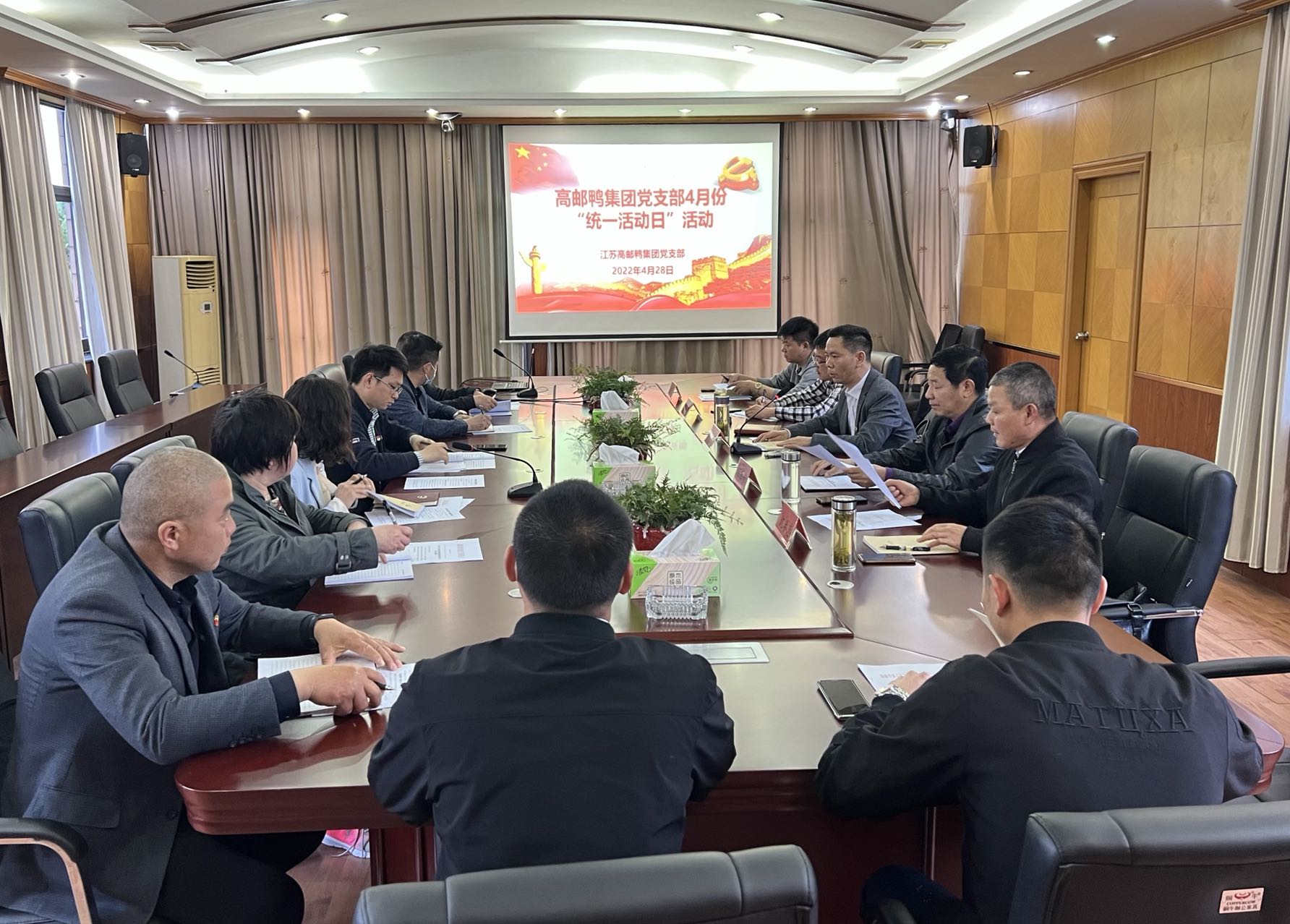 4月28日下午,高郵鴨集團(tuán)黨支部開展4月份“統(tǒng)一活動(dòng)日”專題學(xué)習(xí)活動(dòng),全體黨員、入黨積極分子參加會(huì)議,會(huì)議由支部書記梁勇同志主持。