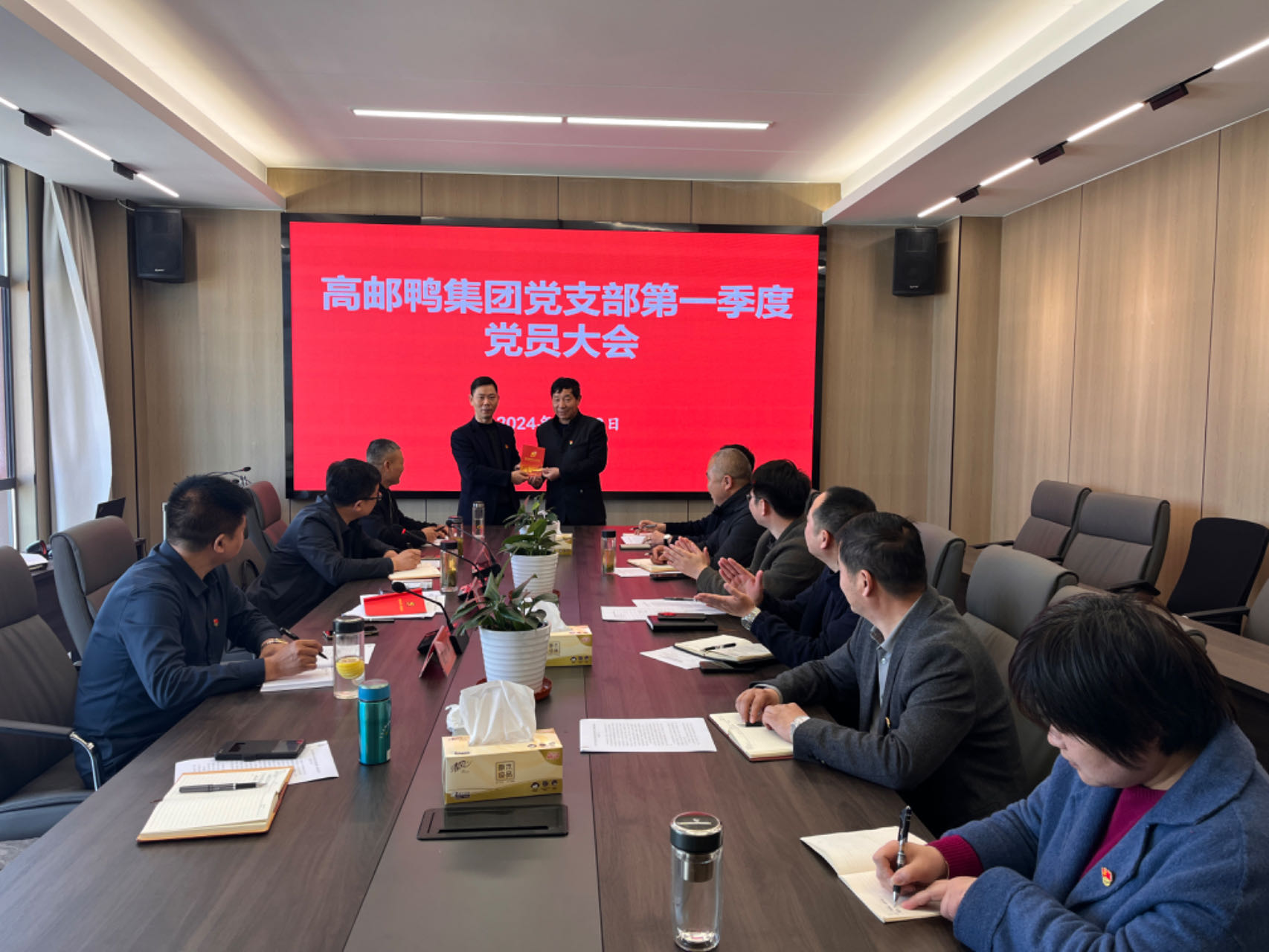 3月29日上午,高郵鴨集團黨支部召開第一季度黨員大會暨“郵理響”冬訓研學活動,支部全體黨員參加會議,會議由梁勇書記主持。