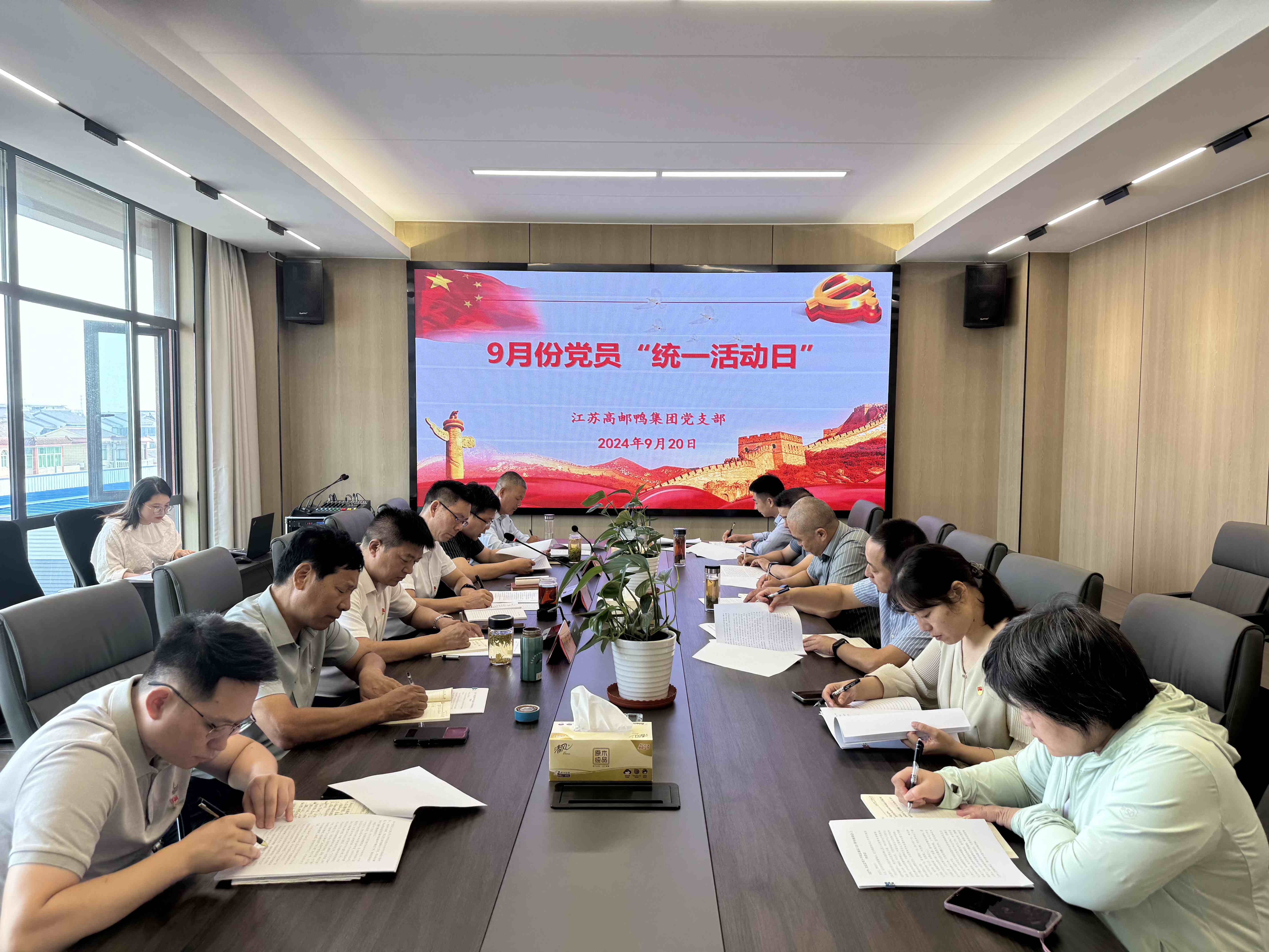 近日,高郵鴨集團黨支部開展9月份“統一活動日”活動,支部全體黨員參加會議,會議由梁勇書記主持。