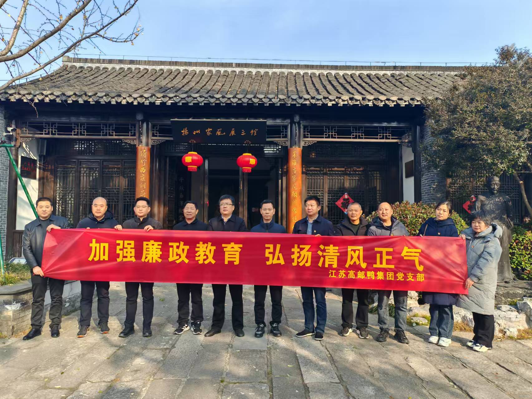 為深入貫徹落實“12.9”黨風(fēng)廉政教育活動要求,推動全體黨員提升廉潔自律意識,筑牢拒腐防變思想防線。12月18日上午,高郵鴨集團(tuán)黨支部組織全體黨員赴揚州市廉潔文化基地--揚州家風(fēng)展示館開展實境教育活動。