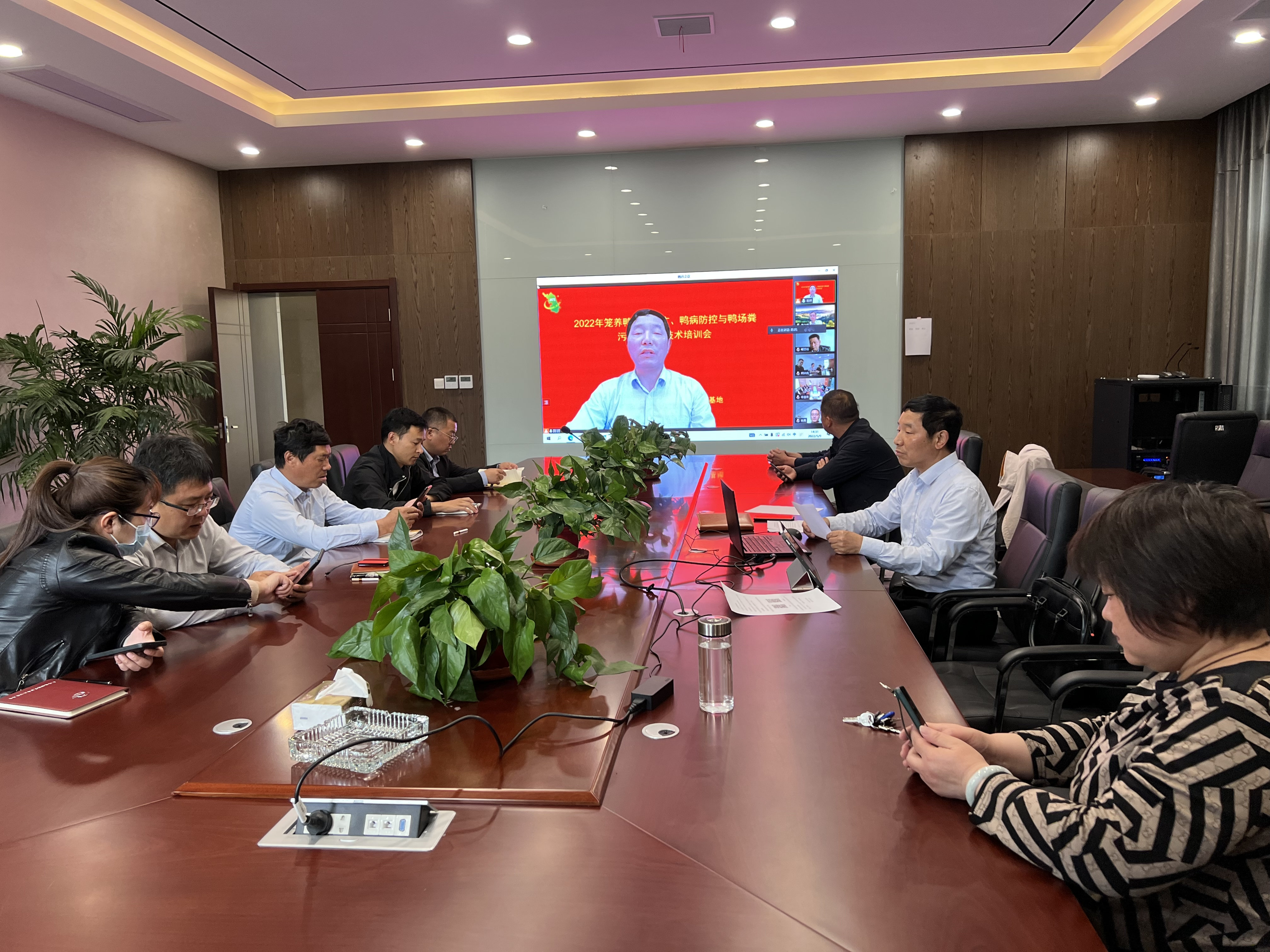 為認(rèn)真貫徹落實黨中央關(guān)于疫情防控的部署工作,積極響應(yīng)揚州市委市政府“不聚眾、不擴散”的要求,充分發(fā)揮體系的團隊協(xié)同優(yōu)勢,扎實推進(jìn)水禽產(chǎn)業(yè)科技培訓(xùn)工作,高郵鴨集團于2022年5月9日下午以視頻會議的形式召開了籠養(yǎng)鴨技術(shù)推廣、鴨病防控與鴨場糞污處理利用技術(shù)培訓(xùn)會。會議由水禽產(chǎn)業(yè)技術(shù)體系高郵基地薛敏開主任主持,崗位對接專家、各科站長及參與工作的體系成員共計90余人參加會議。