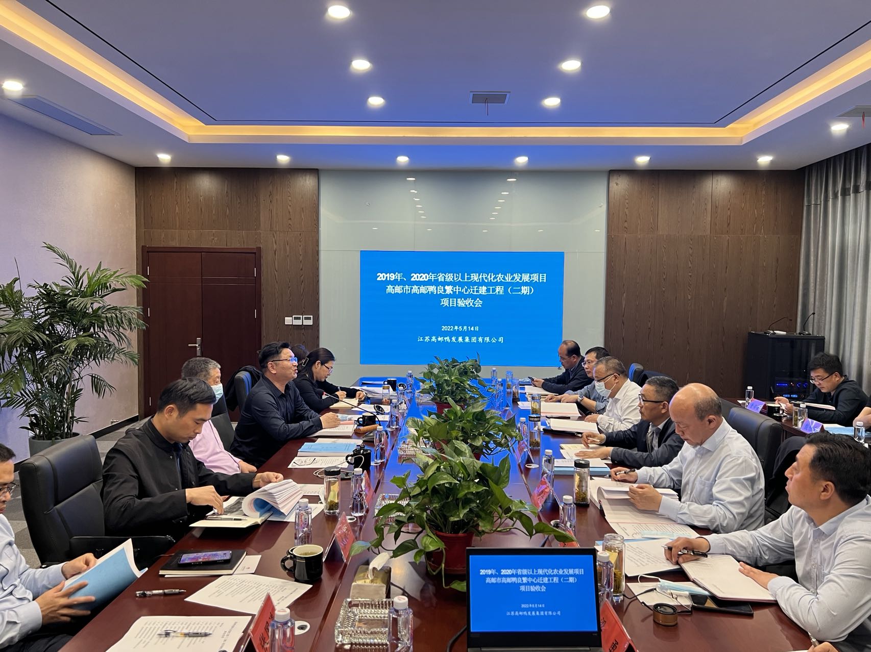 5月14日下午,高郵市農(nóng)業(yè)農(nóng)村局組織對省級以上現(xiàn)代農(nóng)業(yè)發(fā)展專項(xiàng)——高郵市高郵鴨良繁中心遷建工程(二期)開展專項(xiàng)驗(yàn)收,驗(yàn)收會在高郵鴨集團(tuán)鴨業(yè)基地召開。本次驗(yàn)收會組長由揚(yáng)州大學(xué)副校長陳國宏擔(dān)任,揚(yáng)州職業(yè)大學(xué)科技處、揚(yáng)州市農(nóng)業(yè)農(nóng)村局科教處與財計處、揚(yáng)州市畜禽獸醫(yī)和水產(chǎn)技術(shù)指導(dǎo)站及省家禽所等單位專家作為驗(yàn)收組成員,高郵市財政局副局長陳海榮、農(nóng)業(yè)農(nóng)村局副局長姜建平、農(nóng)業(yè)技術(shù)服務(wù)中心主任易軍受邀參加本次驗(yàn)收會。