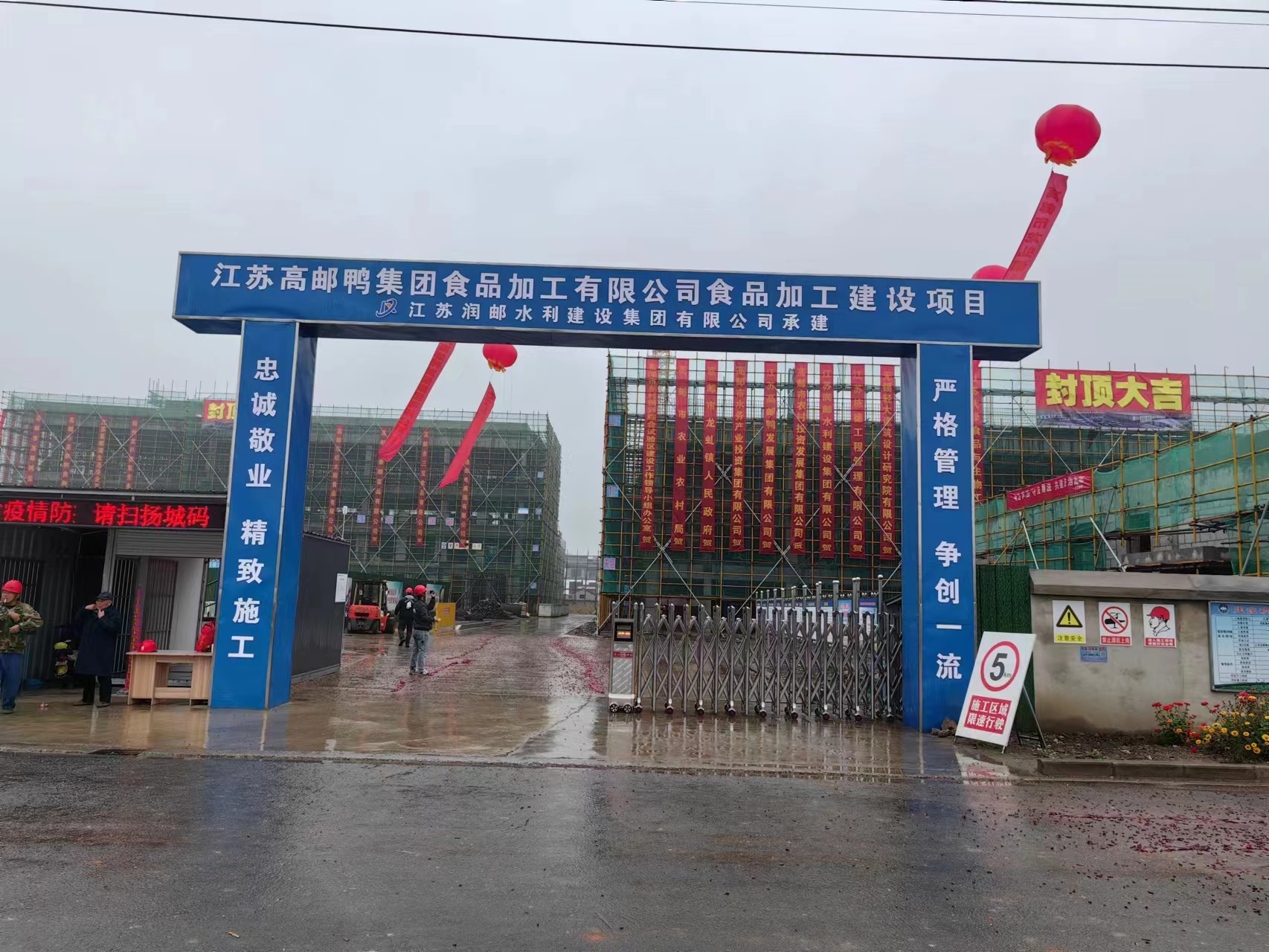 經過前期緊鑼密鼓的建設,11月19日上午,高郵鴨集團食品加工項目順利舉行廠房及辦公樓封頂儀式,水投集團副總經理、鴨集團董事長劉廣游,水投集團副總經理黨定龍,鴨集團總經理梁勇及建設單位、施工單位代表參加活動。