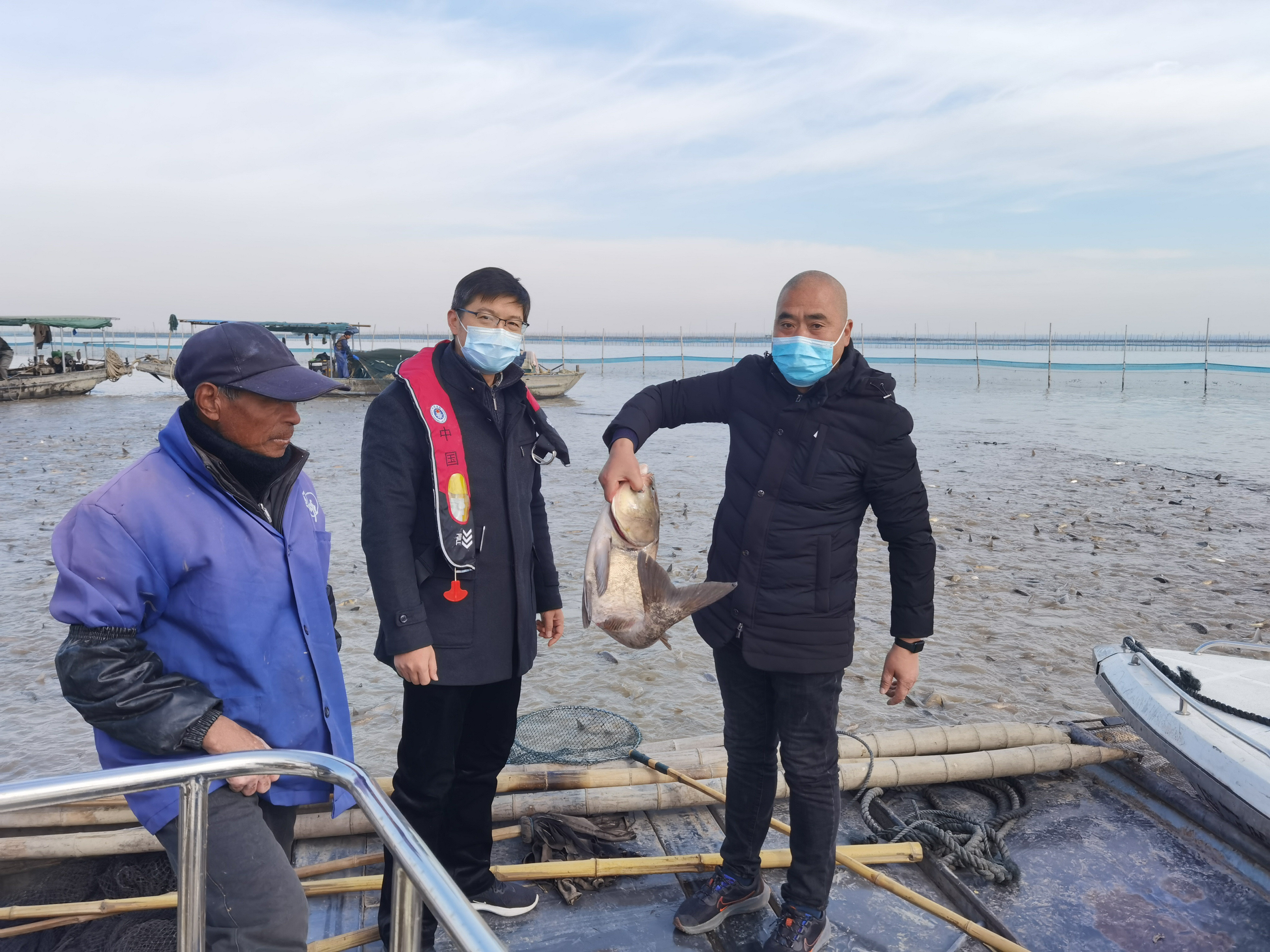 座談會后,謝主任一行還冒著嚴寒到公司湖區養殖基地觀摩了花白鰱魚的捕撈現場。