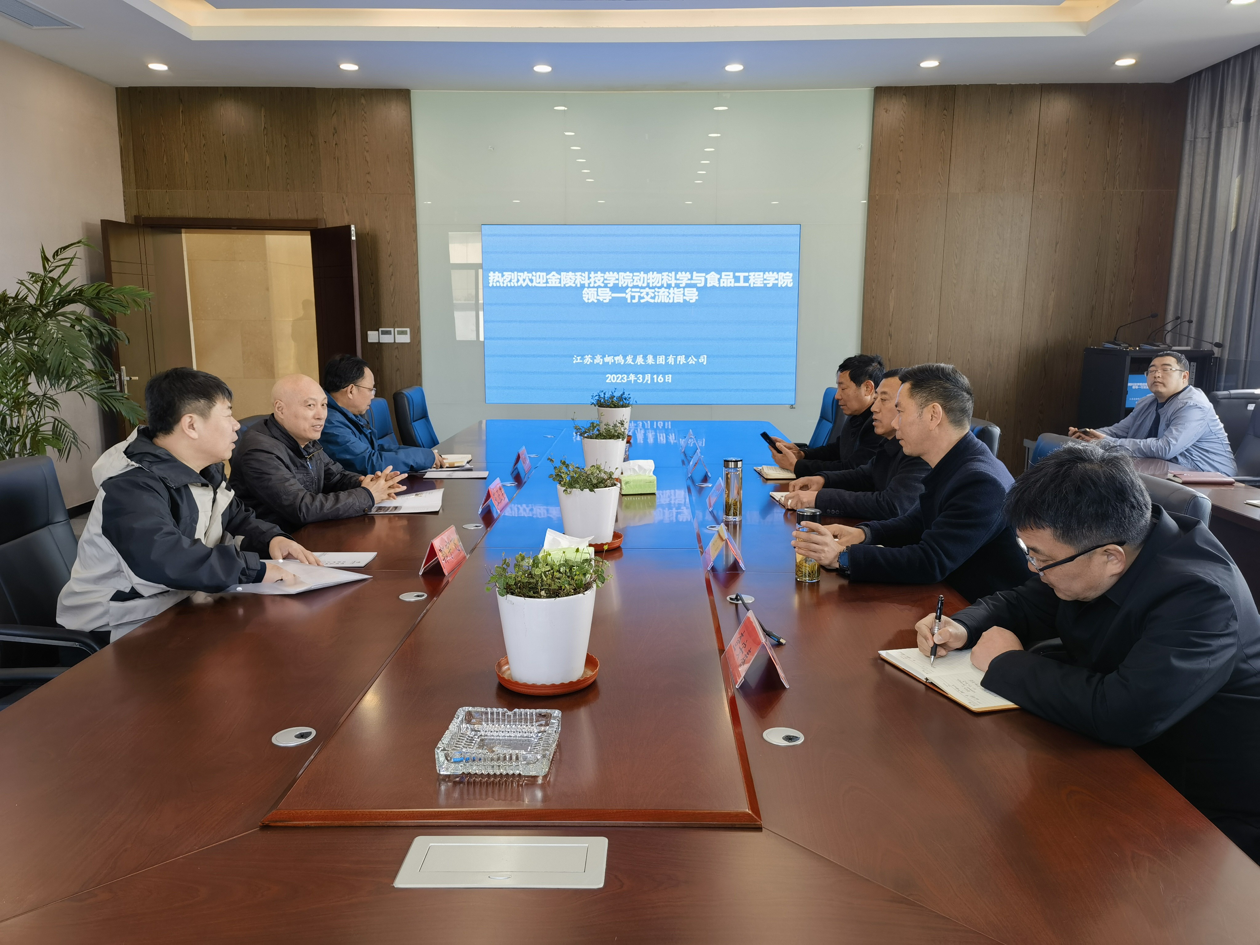 3月16日上午,金陵科技學院動物科學與食品工程學院黨委書記王正昱、院長程澤信一行到高郵鴨集團養殖基地交流指導。高郵鴨集團劉廣游董事長、梁勇總經理全程陪同交流。