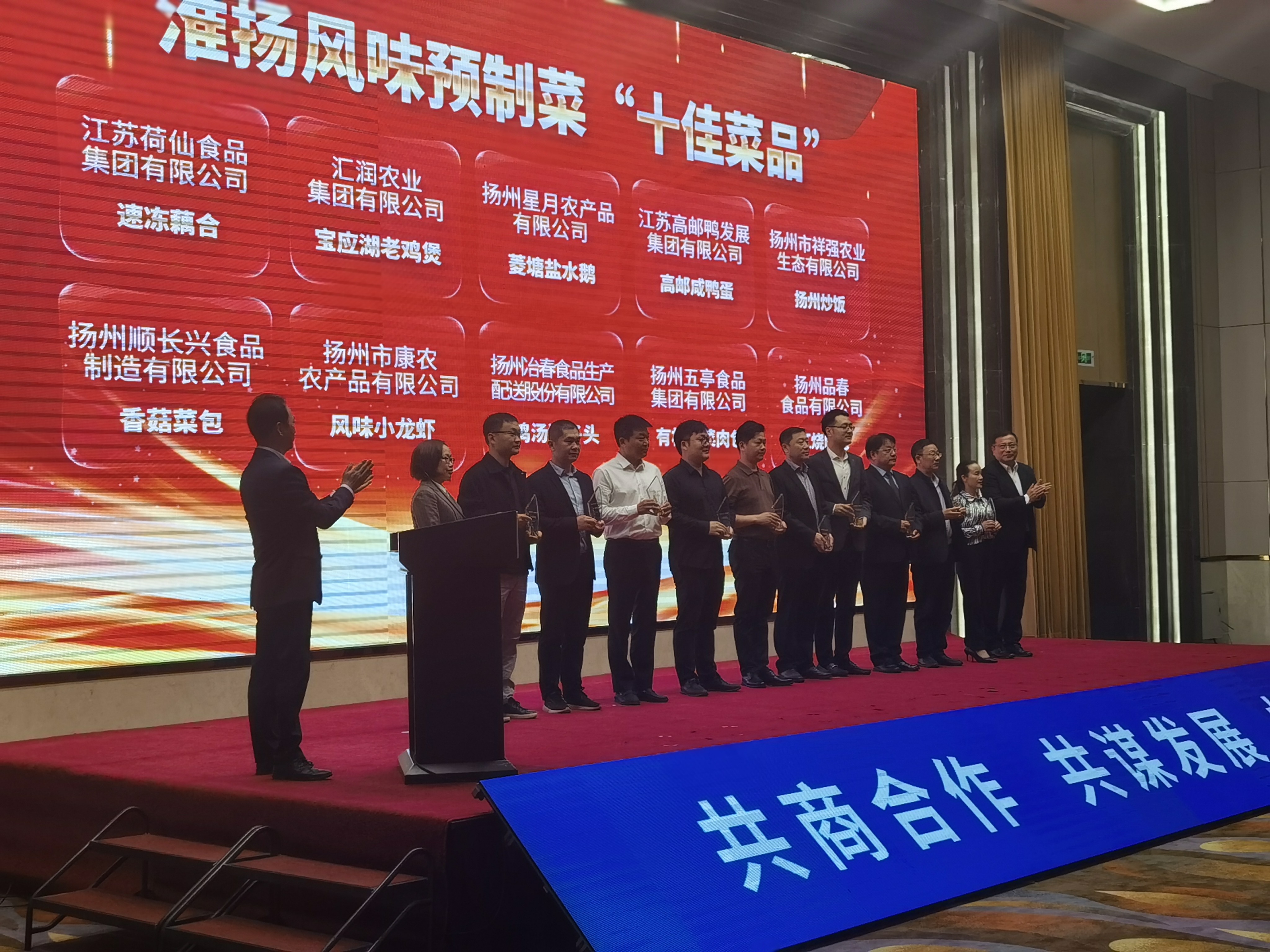 活動過程中,參會食品企業(yè)進行了產(chǎn)品展示,市委常委、常務副市長陳鍇竑駐足高郵鴨集團產(chǎn)品展示區(qū),聽取相關產(chǎn)品介紹。論壇會上,揚州市首批淮揚風味預制菜“十佳菜品”評選結果發(fā)布并進行授牌,高郵鴨集團旗下的“高郵咸鴨蛋”成功獲評淮揚風味預制菜“十佳菜品”。