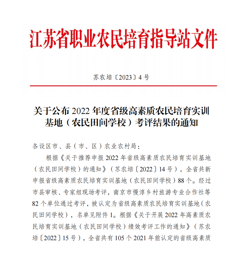 經過前期省市兩級審核、專家組現場評審,近日,江蘇省職業農民培育指導站公布了2022年度省級高素質農民培育實訓基地(農民田間學校)考評結果,高郵鴨集團成功獲評。