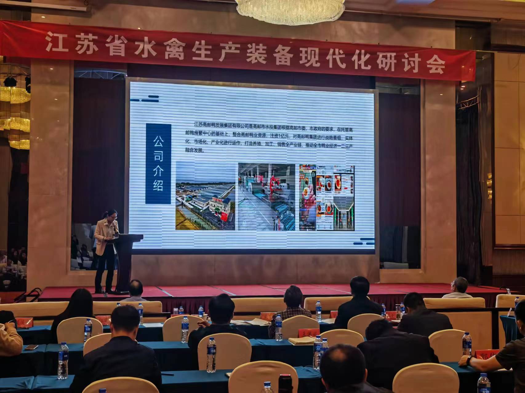 為提升江蘇水禽生產裝備現代化水平,促進產業健康穩定發展。5月11日,江蘇省水禽生產裝備現代化研討會在南京召開,江蘇高郵鴨集團受邀參加活動。此次大會由江蘇省現代化(水禽)產業體系崗位專家戴有禮主持,來自全國各地的行業專家、政府主管部門領導、行業協會及重點企業代表參加研討會。