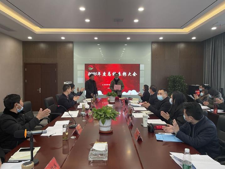 為回顧2020年度工作,表彰先進、總結經驗,部署2021年目標任務,2月5日下午,高郵鴨集團組織召開2020年度總結表彰大會。水投集團副經理、高郵鴨集團董事長劉廣游及公司全體干部職工參加會議。會議由副總經理薛敏開主持。
