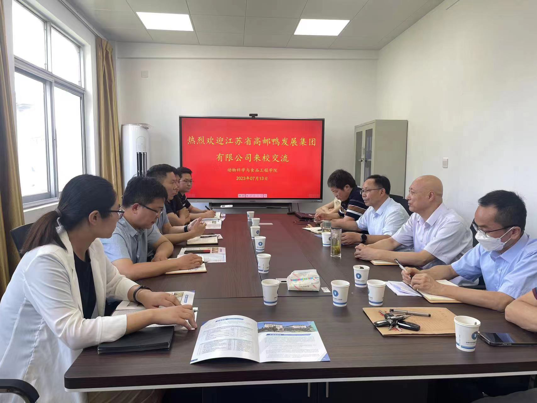 王正昱書記表示,動物科學與食品工程學院結合自身學科優勢,圍繞農業產業科研成果轉化,分別與南京衛崗乳業、江蘇立華公司、南京飼料安全研究中心等單位進行了合作,并希望加強與高郵鴨集團在產業發展、科研交流、人才培養等方面深入合作,聯合破解技術難題,促進產業良性發展。