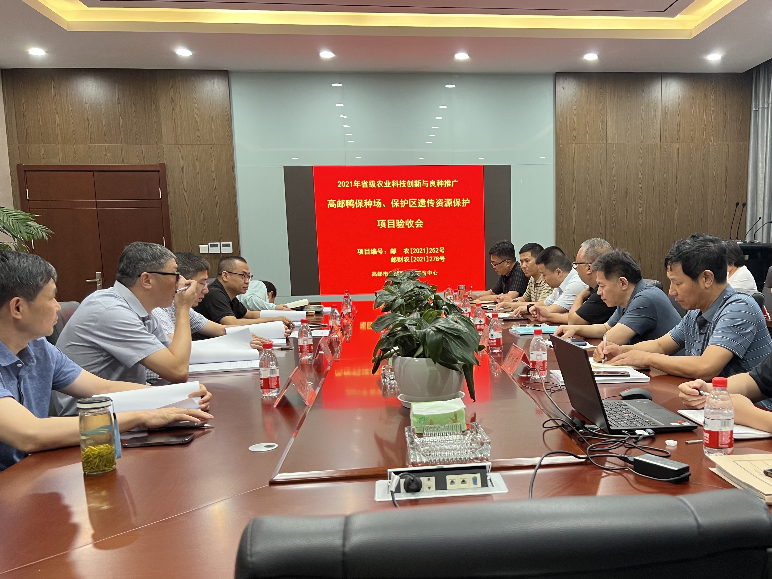 7月21日下午,良繁中心組織召開省級農業科技創新與良種推廣項目驗收會,高郵市農業技術綜合服務中心主任易軍帶領驗收專家組赴郭集基地參加會議,鴨集團副總經理查安春全程參與會議。
