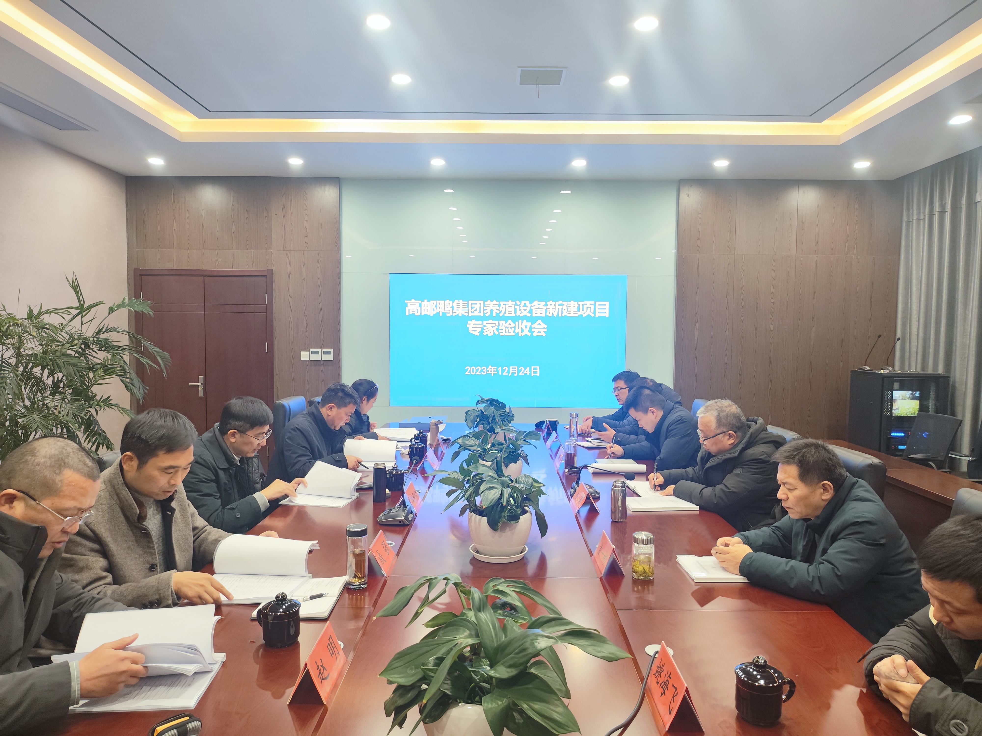 12月24日,高郵鴨集團組織召開專家驗收會,對公司承擔實施的“高郵鴨集團養殖設備新建項目”進行驗收。江蘇省家禽研究所副所長施壽榮、揚州市農業農村局總畜牧獸醫師成強、高郵市農業技術服務中心主任易軍、高郵市農業農村局、財政局相關科室負責人及財務審計專家參加驗收會議。