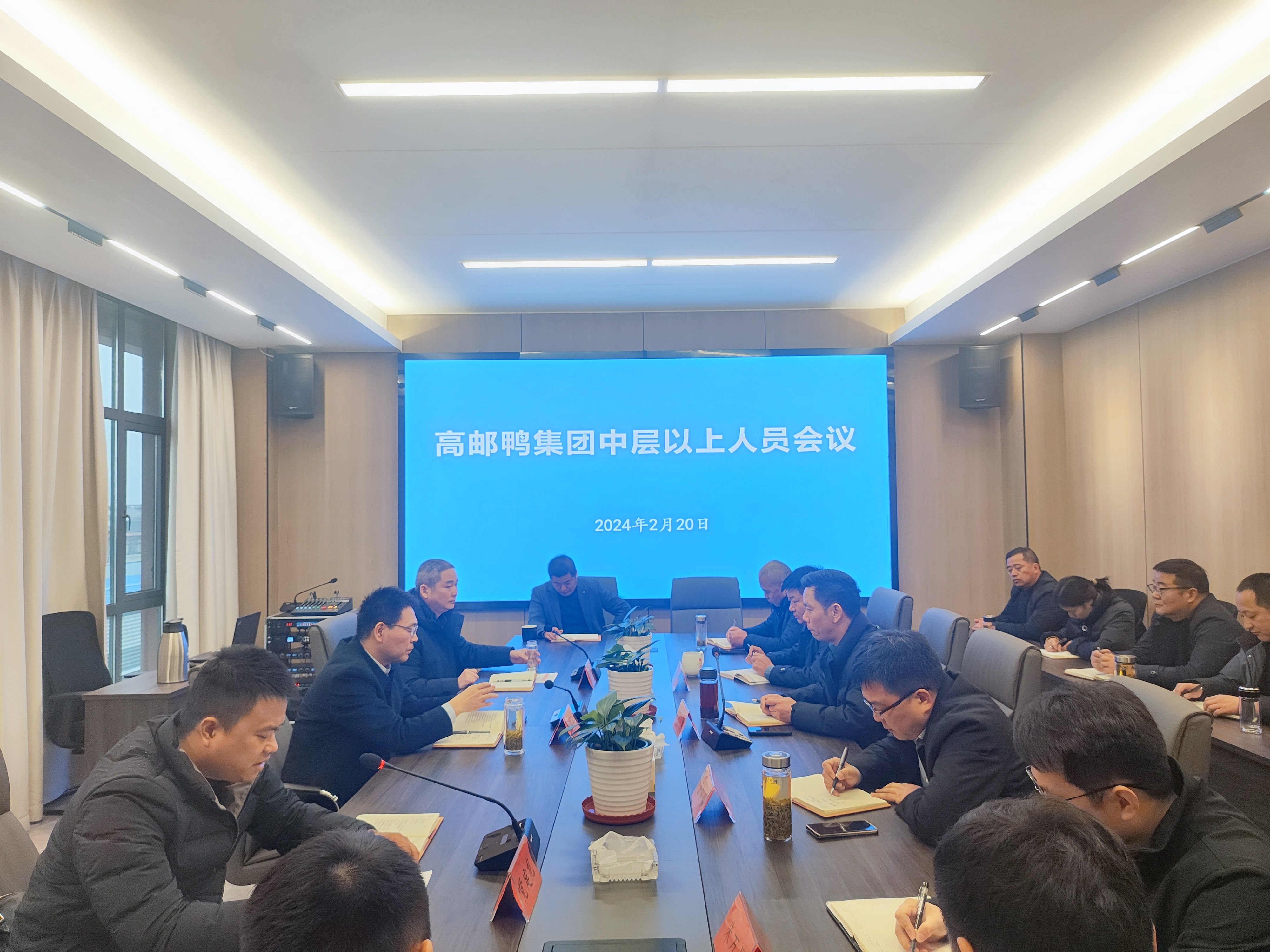 2月20日上午,高郵鴨集團召開中層以上人員會議,宣布干部任職決定。水投集團黨委書記、董事長邵德軍出席會議并講話,會議由水投集團黨委副書記黃強主持。