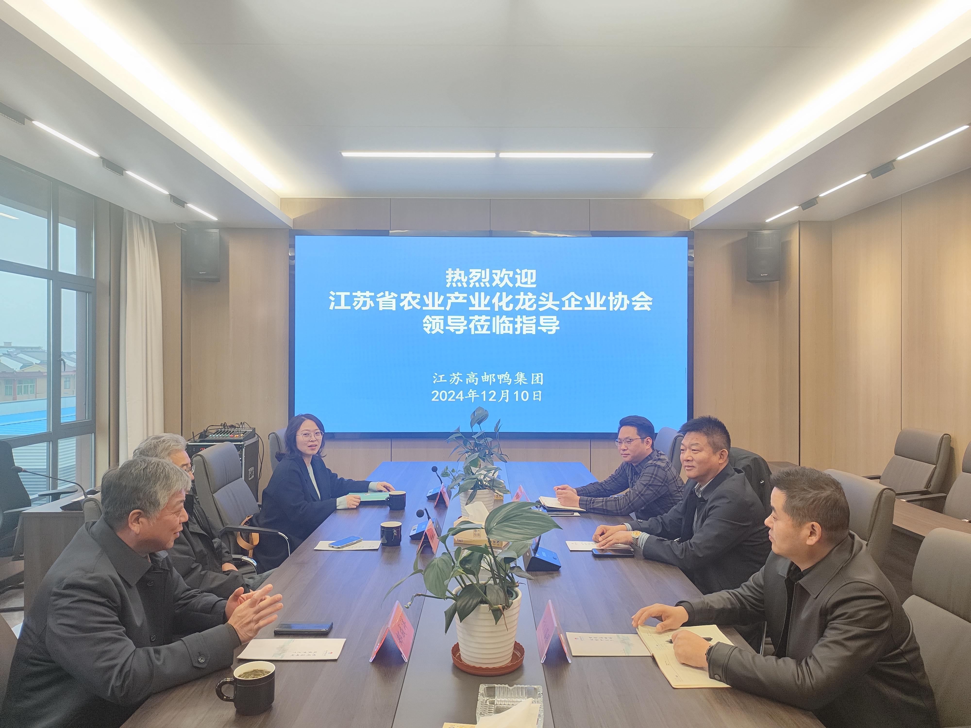 12月10日下午,江蘇省農(nóng)業(yè)產(chǎn)業(yè)化龍頭企業(yè)協(xié)會監(jiān)事會主席、省農(nóng)業(yè)農(nóng)村廳原一級調(diào)研員周林華,協(xié)會秘書長李玲,副秘書長郟成洋一行蒞臨高郵鴨集團考察調(diào)研,高郵鴨集團副總經(jīng)理殷恒兵、朱萬景及相關工作人員接待參觀。