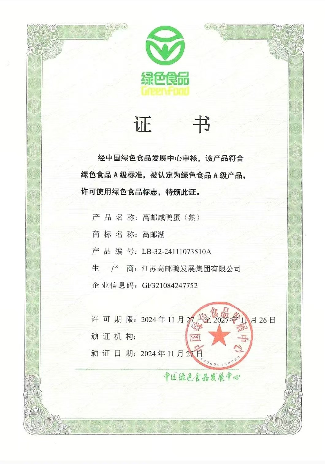 近日,中國(guó)綠色食品發(fā)展中心、江蘇省質(zhì)量發(fā)展委員會(huì)辦公室分別公布了“綠色食品”及“江蘇精品”認(rèn)證名單,高郵鴨集團(tuán)“高郵湖”牌系列產(chǎn)品分獲兩項(xiàng)殊榮。“綠色食品”是對(duì)產(chǎn)品的產(chǎn)地環(huán)境、生產(chǎn)過(guò)程、產(chǎn)品質(zhì)量等方面進(jìn)行嚴(yán)格要求認(rèn)證,是消費(fèi)者公認(rèn)的優(yōu)質(zhì)、安全、環(huán)保的食品標(biāo)志。“江蘇精品”則是江蘇省為推動(dòng)品牌建設(shè)、提升產(chǎn)品和服務(wù)質(zhì)量而設(shè)立的高標(biāo)準(zhǔn)認(rèn)證體系,旨在表彰江蘇省內(nèi)具有卓越品質(zhì)、創(chuàng)新能力和市場(chǎng)競(jìng)爭(zhēng)力的企業(yè)和產(chǎn)品。