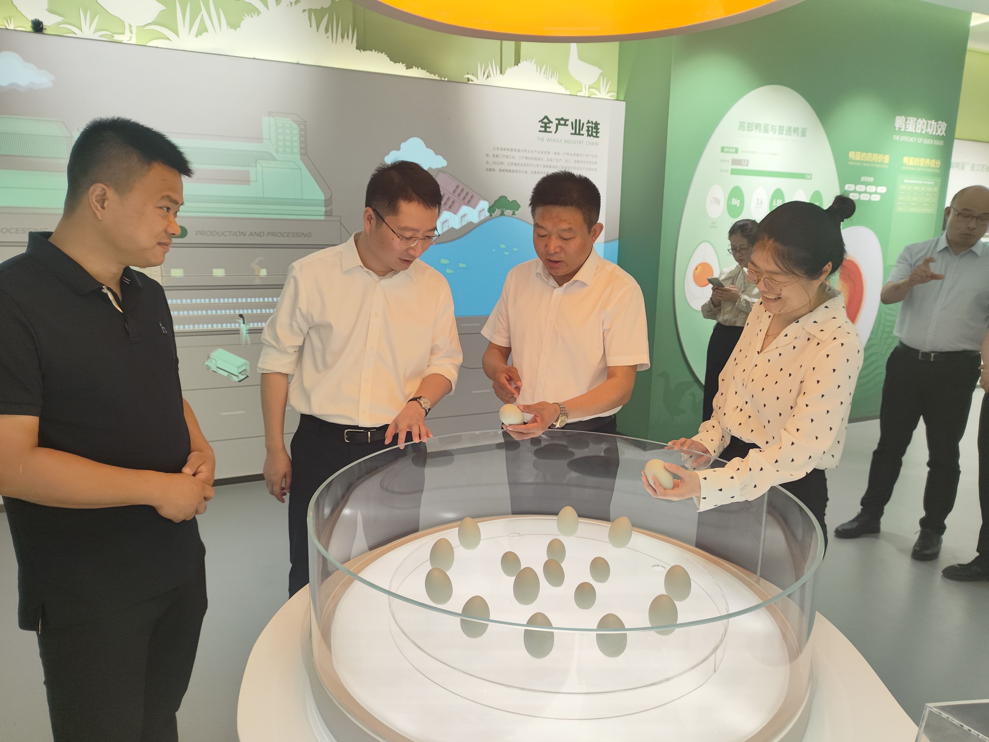 調(diào)研過(guò)程中,曾俊一行先后走進(jìn)高郵鴨集團(tuán)文化展廳及蛋品加工車(chē)間,詳細(xì)聽(tīng)取了高郵鴨蛋的前世今生、高郵鴨集團(tuán)發(fā)展歷程、養(yǎng)殖基地概況、食品加工銷(xiāo)售體系等方面的介紹,并就鴨集團(tuán)產(chǎn)品研發(fā)、項(xiàng)目建設(shè)、市場(chǎng)拓展等工作進(jìn)行充分了解。
