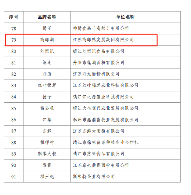 近日,江蘇省農業農村廳公布了2025年江蘇農業品牌目錄,高郵鴨集團旗下“高郵湖”品牌成功入選。江蘇農業品牌目錄旨在發揮品牌引領作用,完善品牌建設管理機制,打造知名度高、影響力大、競爭力強的江蘇農業品牌。