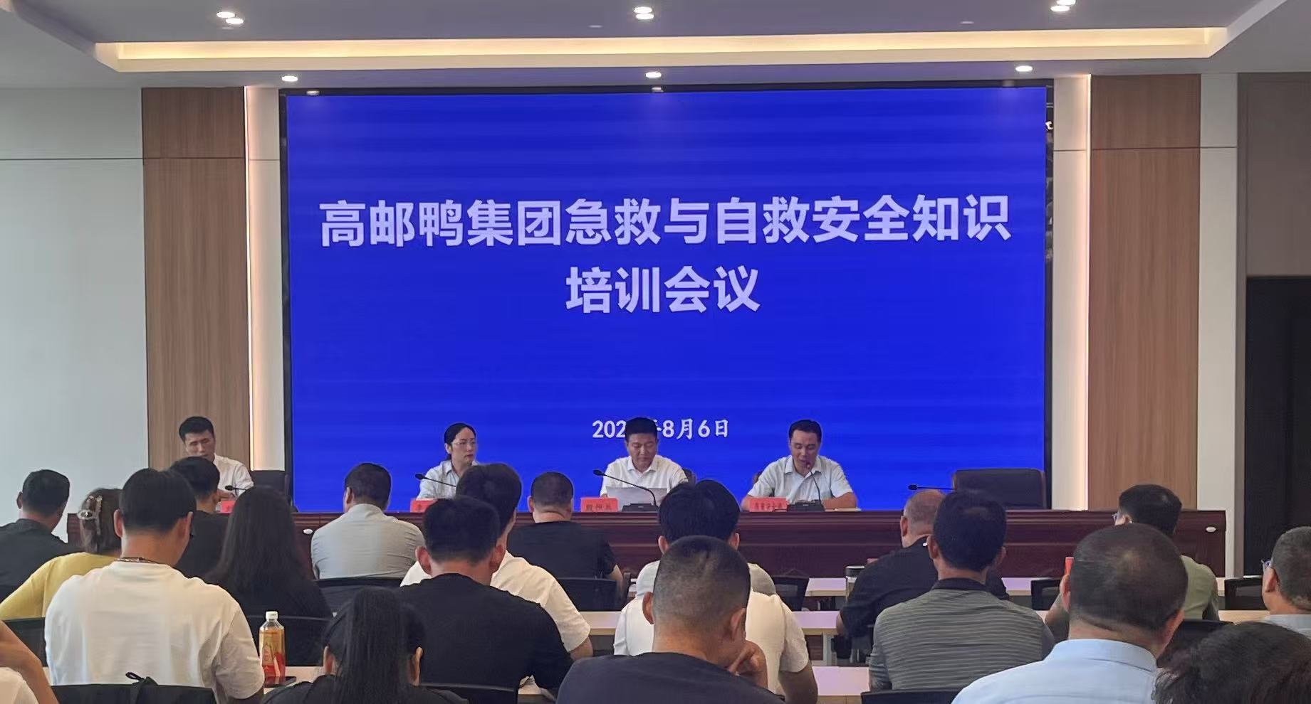 為切實提升員工安全意識和應急處置能力。8月6日下午,高郵鴨集團特邀市安全培訓學校專家開展急救與自救安全知識專題培訓活動,鴨集團副總經理殷恒兵、各下屬企業部室負責人、安全生產管理人員及職工代表共計50余人參加培訓活動。