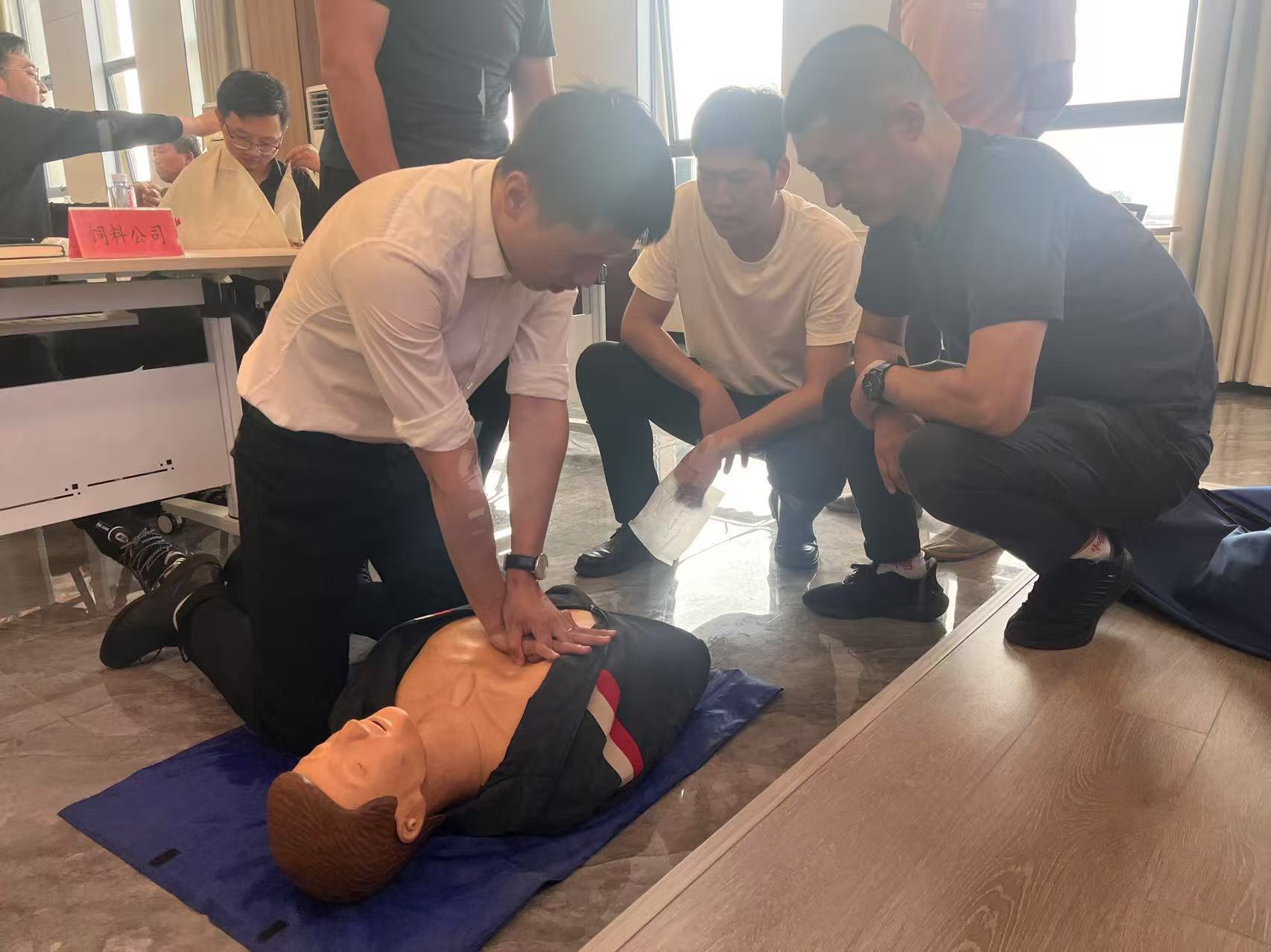 培訓采取"理論講解+實操演練"的方式,市安全培訓學校劉鋆雨老師采用圖文結合的方式,深入淺出地講解了心肺復蘇、創傷包扎、氣道異物梗阻急救等實用技能,參訓人員分組進行實操練習,在專業指導下掌握正確的急救手法。